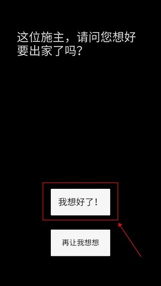 2、当确定了出家的想法后,选择“我想好了”,随后就能够自行拟定法号。