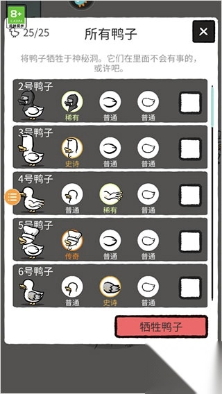 4、倘若你不喜欢某只鸭子,只需点击左边鸭子的图标,便可舍弃那只不喜欢的鸭子。