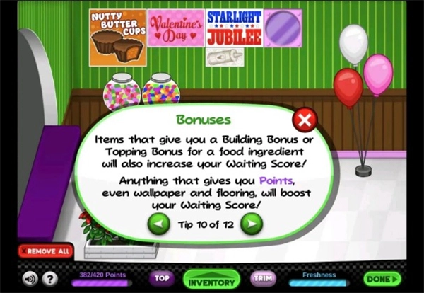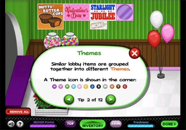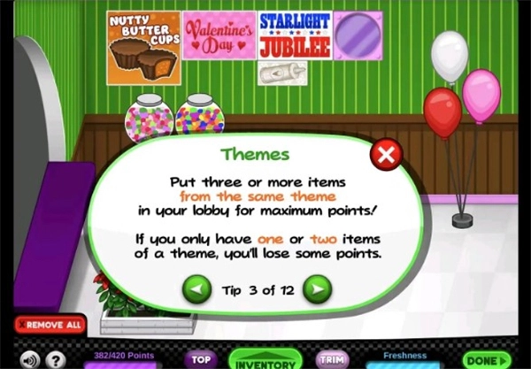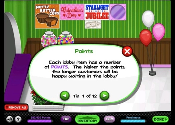 Tip5:你的顾客会厌倦每天在你的大厅里看到同样的物品,所以每个物品的新鲜度会随着时间的推移而下降,导致你失去一些积分!