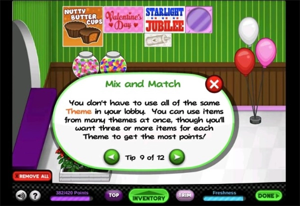 Tip9:你不必在你的大厅里使用所有相同的主题。你可以同时使用多个主题的物品,不过你需要为每个主题使用三个或更多的物品才能获得最多的积分!