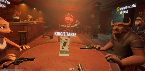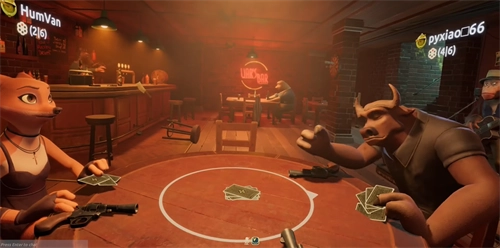 6、玩家们依次轮流进行出牌、质疑和开枪等操作,直至桌上仅剩下最后一位玩家,此时游戏宣告结束。
