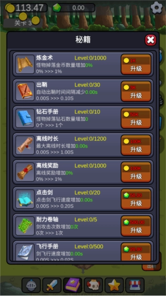 4、卷轴系统,通过升级卷轴来提高打怪的效率和剑升级的速度等。