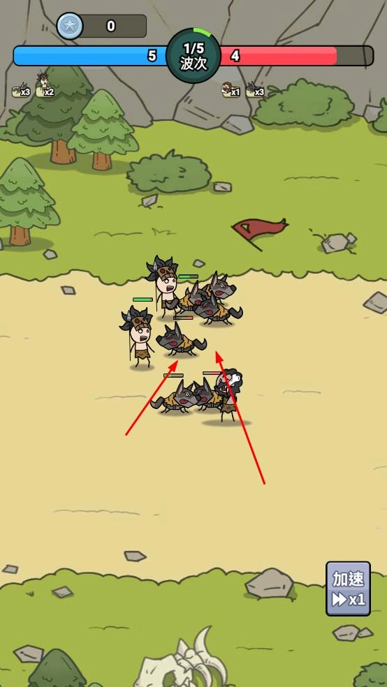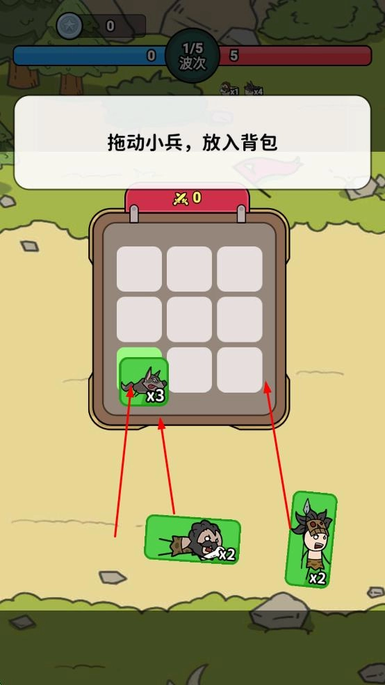 1、拖动小兵狼、野人等放入背包格子,准备战斗。