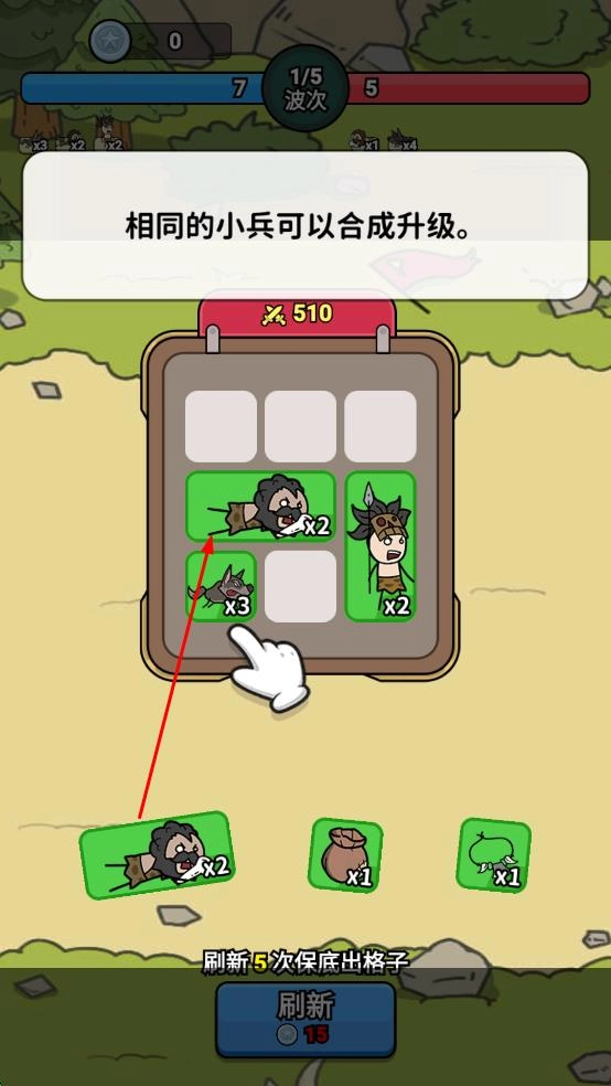 2、相同小兵合成升级,提升战力,应对波次敌人。