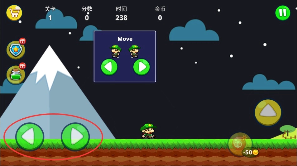2、通过屏幕左侧的虚拟方向键来操控马里奥移动,让马里奥能够在蘑菇王国里一个个精心设计的场景中灵活穿梭。