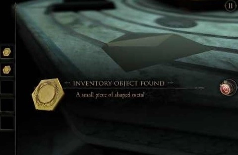 之后双击这张桌子上的信封,焦点不在信件,而是桌角边上卡住的另一块六角形金属片。