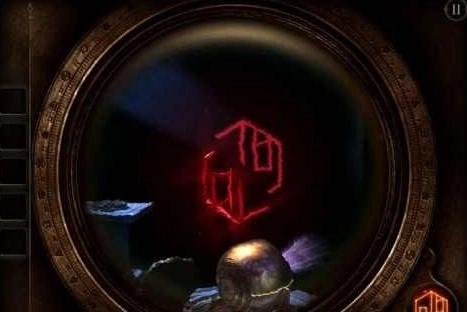 记得镶嵌在八角桌上的三个图案吗?拉近奇怪的投影仪或者说探照灯,戴上目镜,去找这三个图案吧!第一个在左中,类似Z字母翻转过的图案。