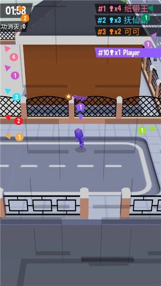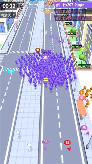 《拥挤城市》,英文名Crowd City,是一款玩法别具一格的多人联机在线竞技手游。在游戏里,玩家要在城市中持续收集小人,将其变为自己队伍的颜色,从而壮大自身实力,最终击败城市中的其他队伍,赢得胜利。该游戏玩法简洁,然而游玩体验却十分丰富。玩家既可以优先收集地图上无归属的行人来强化自身,也能够趁敌人尚未发展起来时主动进攻,亦或是躲起来,等待敌人们相互争斗,这种简单的玩法为玩家带来了诸多乐趣。