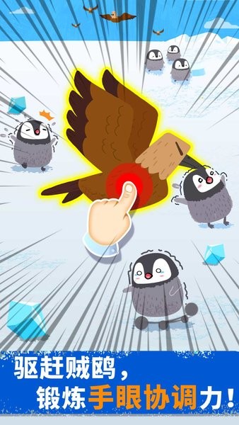 瞧呀,企鹅爸爸正专注地孵着蛋呢,而企鹅妈妈则出门去捕捉美味的鳞虾啦!宝宝们,快动动你们的小手,帮忙引导企鹅抓住鳞虾哟。不过要格外小心它身后的虎鲸和海豹呀!