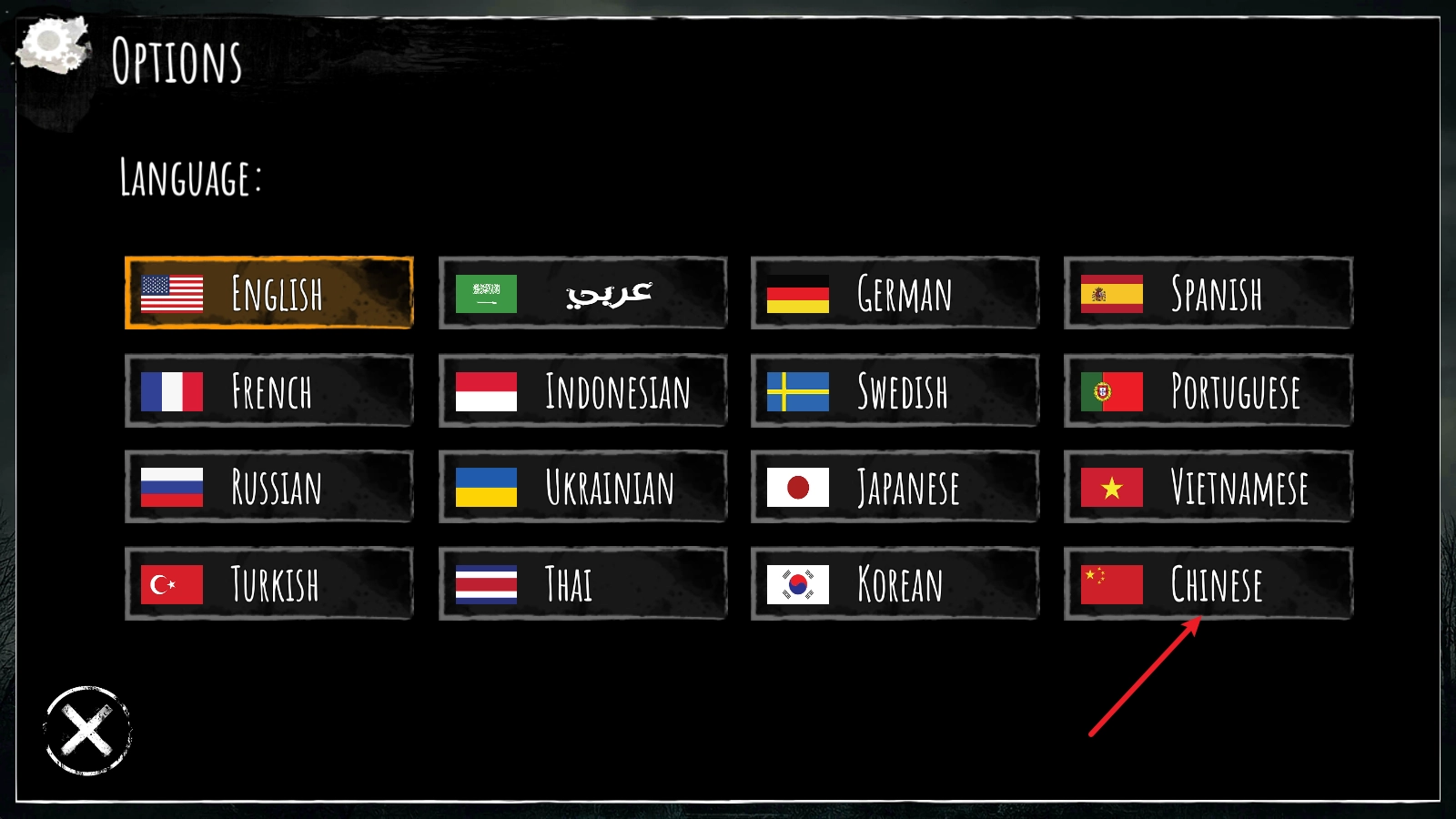 3、接着在众多语言里,寻找到“CHINESE”,点击它就能切换成中文。