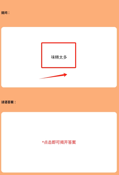 2、猜味精太多谜题时,直接点红色框里的文字,答案就会立刻显示出来啦。