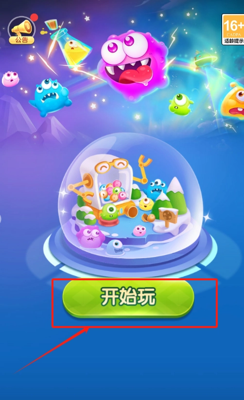 1、点蓝色背景下方绿色开始玩按钮,进入萌菌大作战游戏主界面。