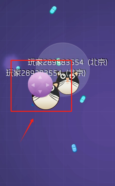 3、看紫色背景游戏画面,你的卡通头像和紫色圆球正在和其他玩家对战呢。