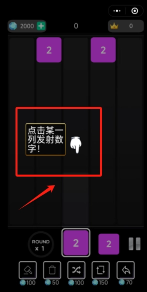 3、轻点屏幕的某一列,发射数字方块,使相同数字相互碰撞并合并,力求获取更高分数。