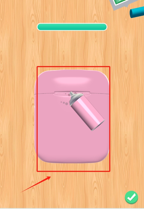 3、点红色框里的粉色物件,用粉色喷雾罐喷涂,完成后点绿勾确认。