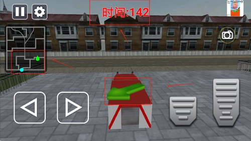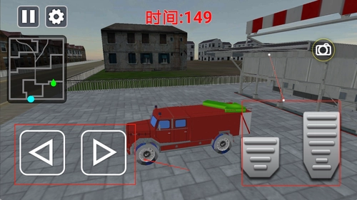 2、通过按钮控制加速、刹车与鸣笛,长按水枪按钮进行灭火操作,同时注意时间限制避免超时导致任务失败影响进度。