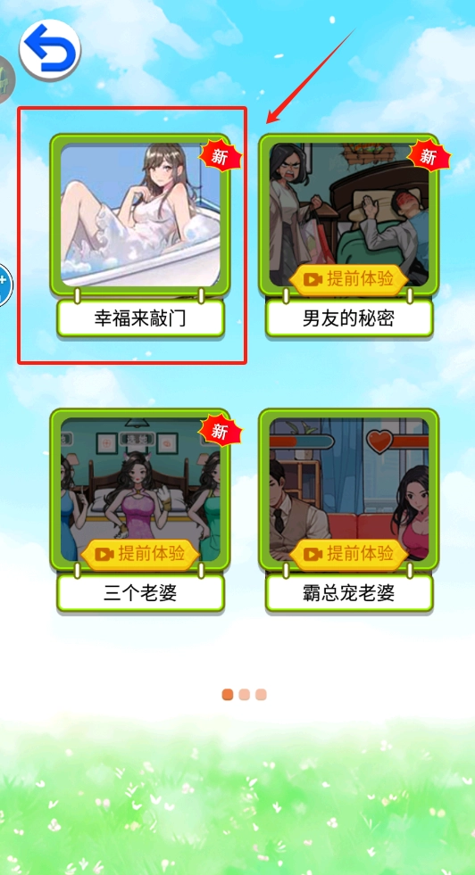 3、点击绿色边框的游戏图标,选择幸福来敲门或带提前体验标签的新游戏。