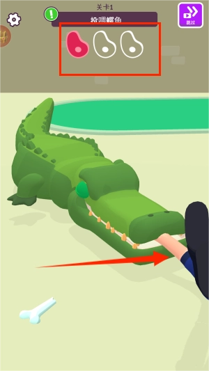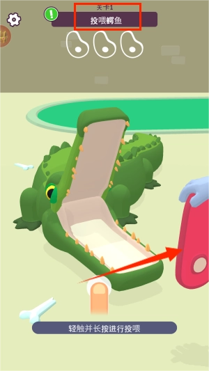 1首先,在画面里选中食物图标,接着长按该图标,然后把它拖拽到鳄鱼嘴里,以此完成投喂操作。在此过程中,要留意观察鳄鱼张嘴的时机。