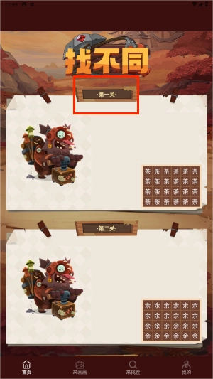 1. 进入游戏,选择初级难度关卡,开启趣味找茬挑战。届时,画面会展示出若干相似图案,等待你去辨别其中的差异。