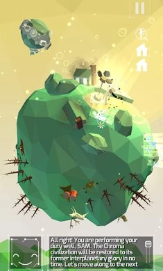 从银装素裹的冰雪星球,迈向充满生机的绿色行星。仅需简单地用一根手指操控,你就能轻松驾驭精美的3D行星,引领SAM开启史诗般的征程。途中别忘了留意那些神秘的神话生物!