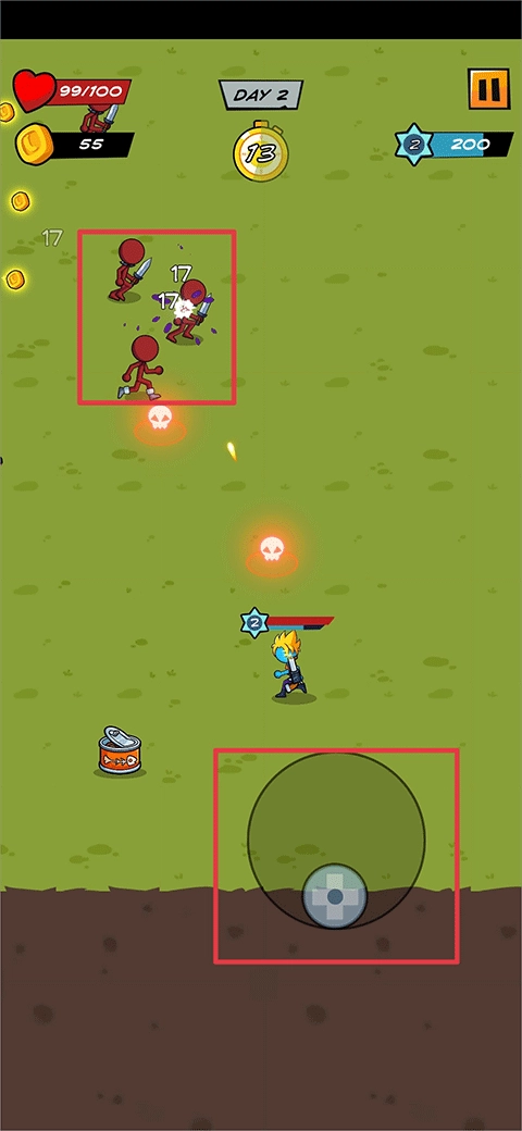 3、进入游戏后,利用下方轮盘来操控角色移动,持续走位以击杀地图中出现的敌人。