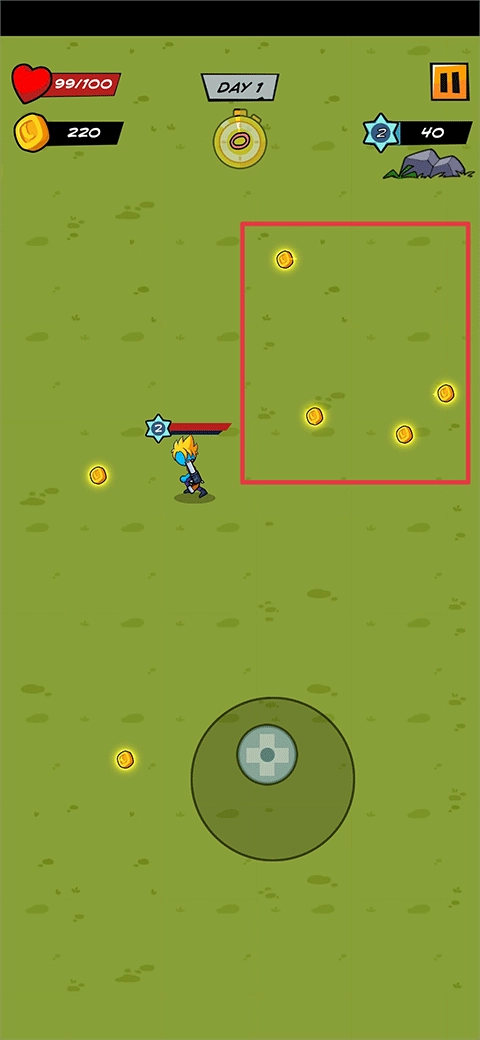 4、敌人被击杀后会化作金币,你既能够操控角色移动至金币所在位置进行收集,也能够在倒计时结束后,等待系统自动收集。