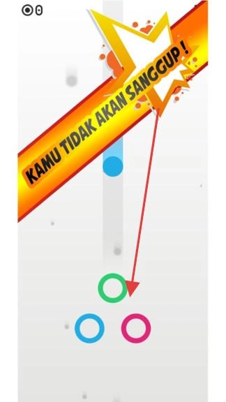 1、观察上方滚动小球颜色,当小球下落时,点击下方对应颜色圆环(如绿球点绿环)。