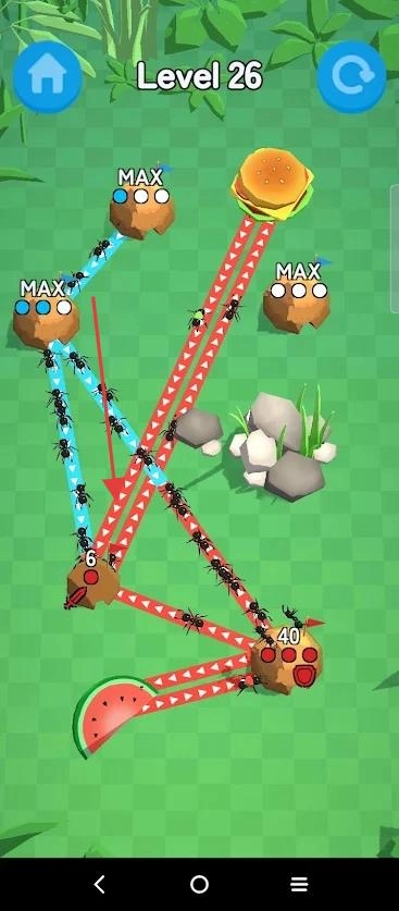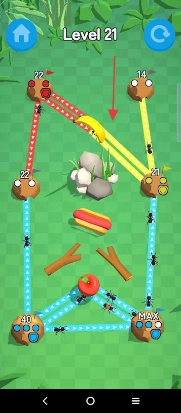 1、在Level21/26/28关卡,规划蚂蚁路径,调度部队搬运资源。