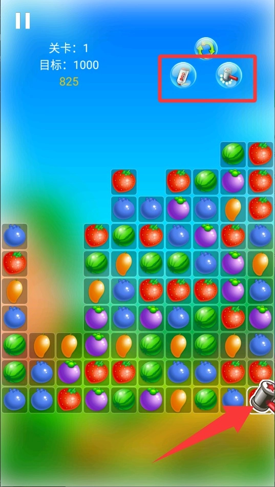 3、要是碰到卡关的情况,别死磕,点击道具来清理场上阻碍。炸弹能大面积消除,彩虹果能自由搭配,在关键时候这些都能助你通关。