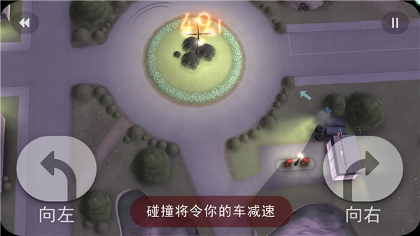 4、若玩家在某一辆车上耗费的时间过多,又或者频繁撞车,此时可按下左上角的后退键重新开始。不过,每按一次后退键,总时间将会减少一秒。
