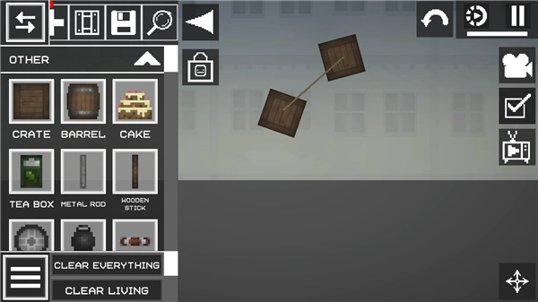 3、在此处,我们能够挑选各类工具用以连接物品,像这里就把箱子借助绳子组合到了一起。