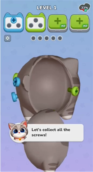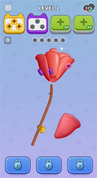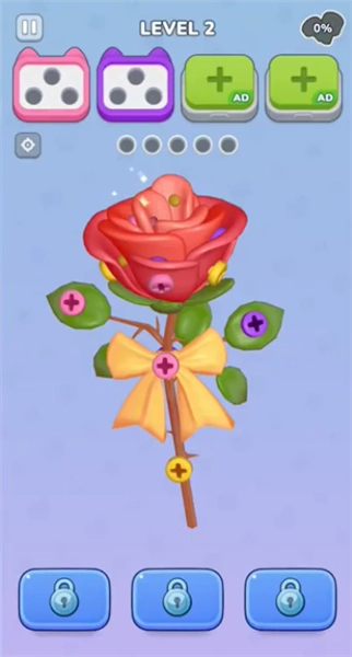 1、游戏玩法属于益智类的拆解玩法,以3D螺栓操作为核心。玩家置身于立体化场景,会遭遇螺栓堵塞、螺母错位等机械方面的难题,要通过旋转、拖拽、点击等触屏操作来实现部件拆解。