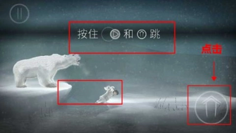 5、在狂风呼啸、暴雪纷飞的夜晚,游戏正式开启。小女孩从睡梦中猛然惊醒,却发现自己正被北极熊追赶。别再迟疑,赶快点击屏幕左侧的奔跑按钮,助她摆脱北极熊的追击。