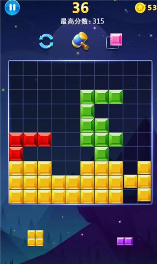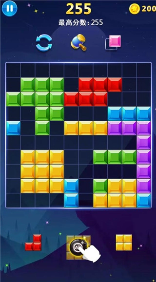 把俄罗斯方块组合拖到棋盘中,方块连成一线就能消除。经典的拖动玩法,让你沉浸其中,玩得根本停不下来,轻松成为方块高手!