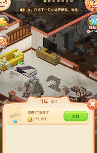 2、玩家对废旧家园进行改造,不断的打扫的过程中无意中在一个废旧纸箱中发现了一个受伤的狗狗。