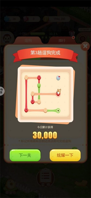 可以带遛狗狗,是一个趣味性的划线小游戏,狗狗只能横向或者竖向走。