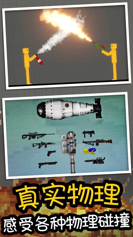 2. 搭建个性化场景,测试各种武器道具的物理互动效果。