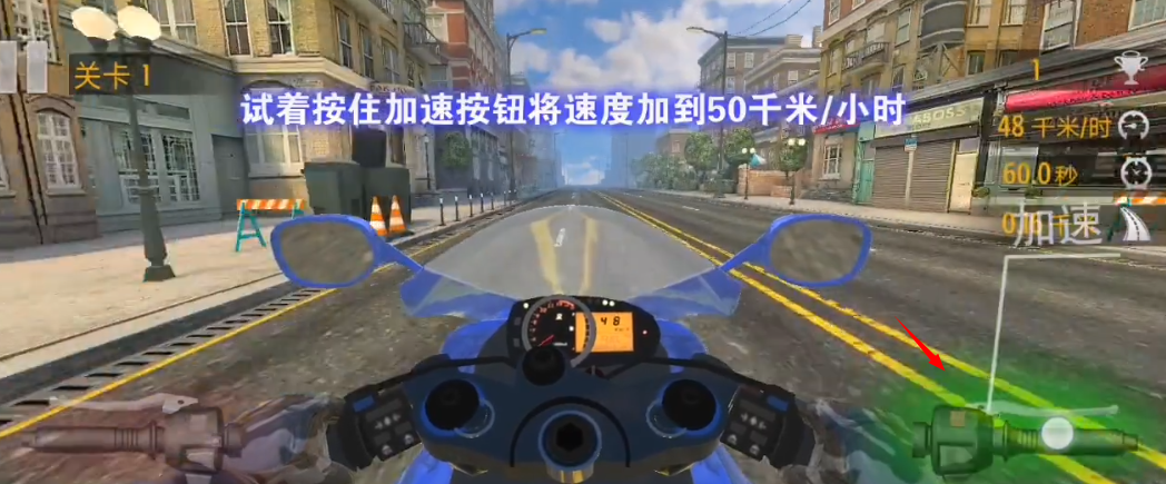 3、设有简单的左右加减速按钮,只需用指尖长按,就能轻松控制摩托车加速或减速等操作。