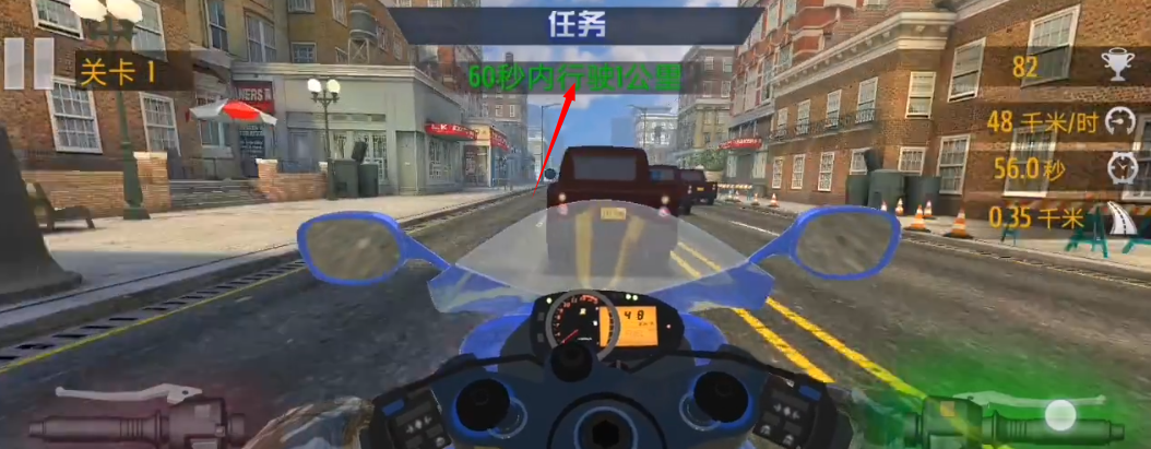 4、此外,在过程中要是遇到车辆,还能够通过摇晃手机来操控摩托进行躲避。