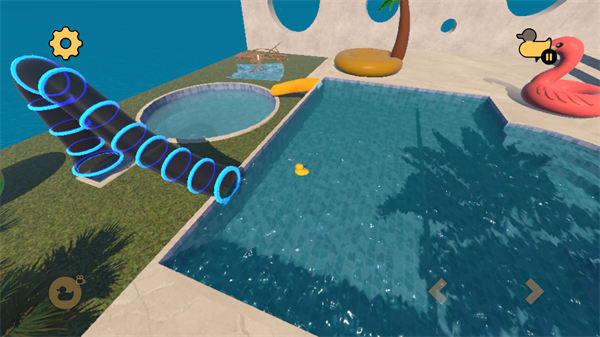 4、无目标探索玩法:玩家能够操控小黄鸭在场景里自由自在地漂浮,无需去完成那些复杂的任务,仅仅通过滑动屏幕就能控制小黄鸭的方向,这种玩法特别适合利用碎片化时间来游玩。
