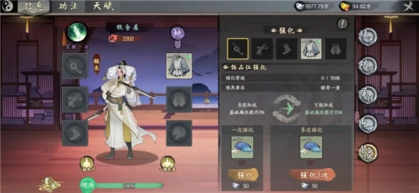 当弟子集齐一身心仪的装备后,即可前往弟子界面,进入弟子的装备培养界面开展培养操作。