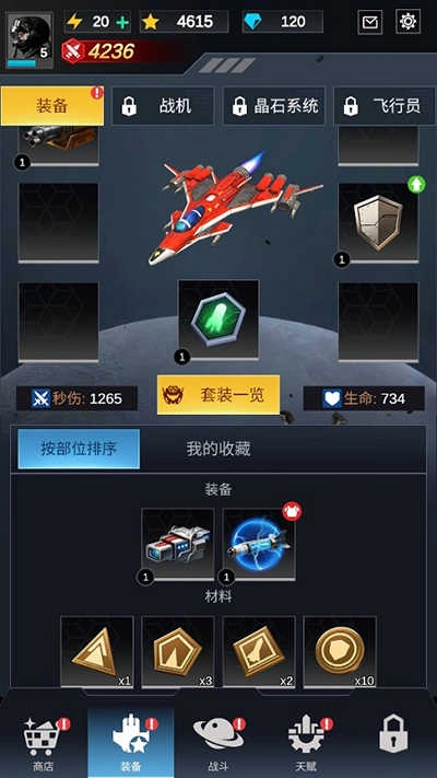 除了天赋系统外,装备系统同样是提升战机战力的重要途径;玩家能够收集各类装备来强化战机;另外,战机型号的挑选、晶石系统以及飞行员等元素也可供玩家进行培养与提升。