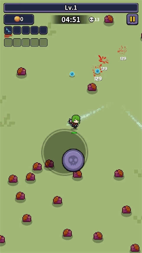 游戏开启后,滑动屏幕就能随意控制角色移动,巧妙的走位会是存活下来的核心要点。