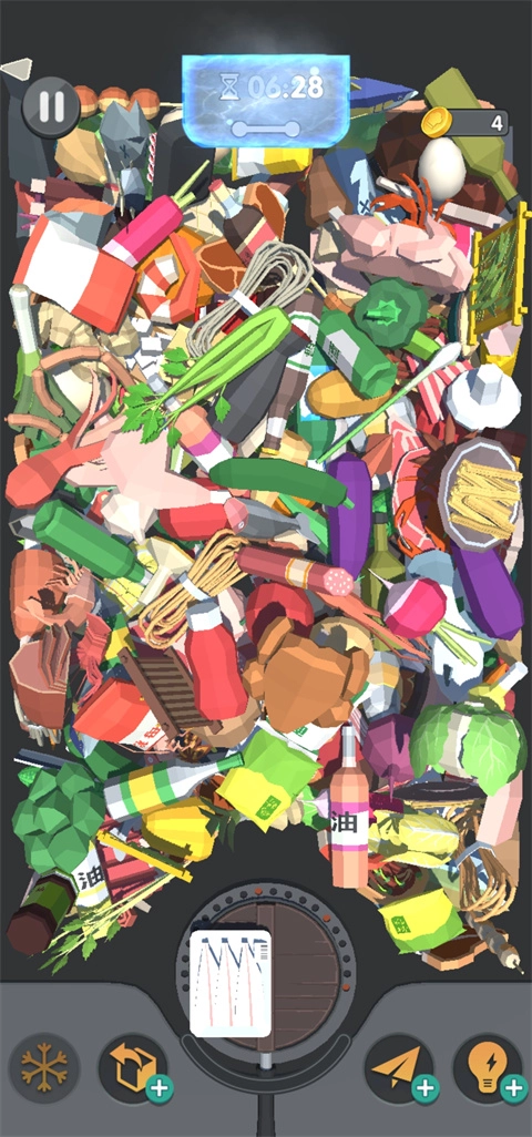 游戏设有时间限制,玩家得在规定时长内消除所有物品,要是觉得有难度,还能借助道具帮忙。