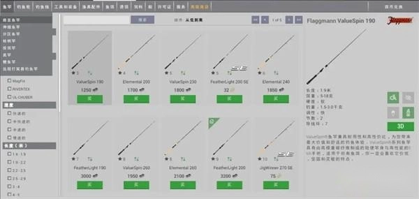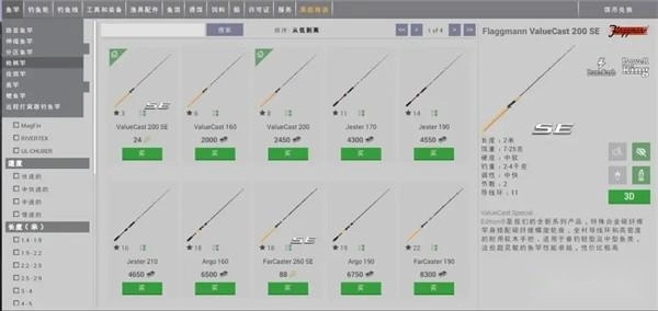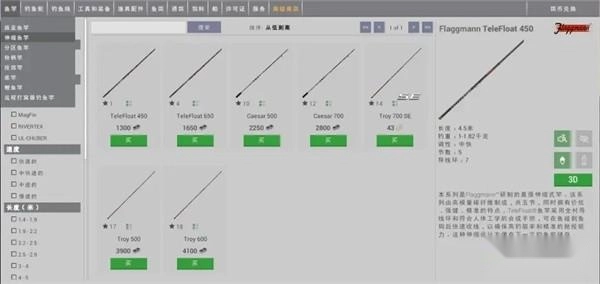 聊完路亚竿,接下来和大家讲讲浮钓竿。浮钓竿主要有两种类型,其中一种是伸缩鱼竿,这里推荐大家选择7米的伸缩杆。因为竿身比较长,提鱼的范围也更远,作钓时能在7米范围内瞬间把鱼提起来,所以它也被叫做“秒提杆”。而游戏里这种秒提的设定,让玩家在有船的情况下,不用在意竿子本身的最大钓重限制,不管鱼的体型大小,都能直接秒提起来。