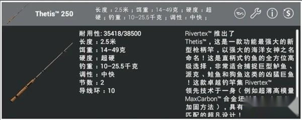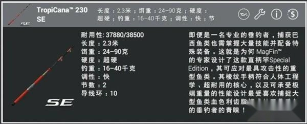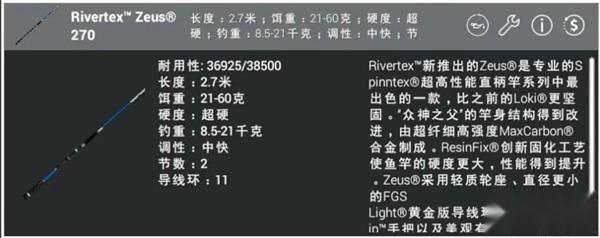 一般来说,后期常用的枪柄杆大多是顶级或次顶级的,所以这里给大家推荐当前版本的次顶级枪柄杆。之所以不推荐顶级枪柄杆,是因为这版本性能最好的水滴轮拉力只有40kg,为了在搭配装备时能把卸力打满,所以选择了拉力同样为40kg的次顶级枪柄杆。