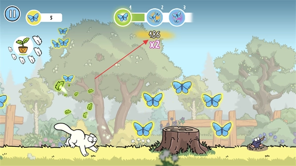 收集小草盆栽与蝴蝶能够提升关卡解锁的进度,若连续收集还能进一步提高进度倍率。