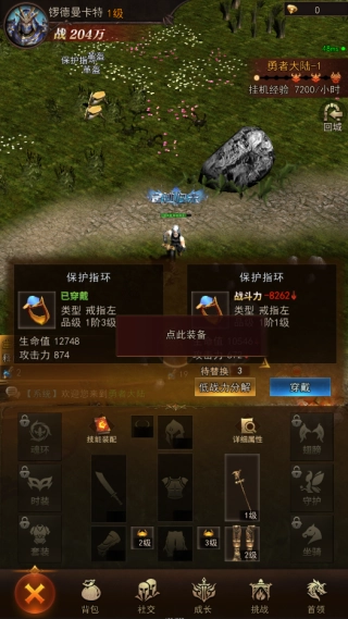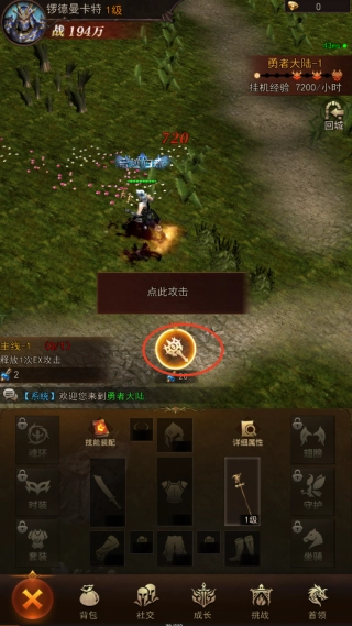和沿途遇到的敌人进行即时战斗,点击释放技能连招,赢了就能得到各种装备。