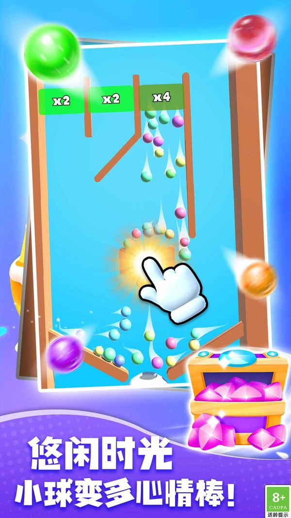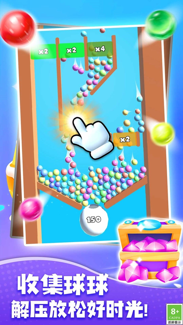 1.按住屏幕并拖动手指来完成发射动作,注意把控好力度,尽量触发弹球。