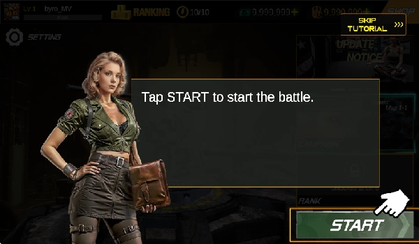 1、点击屏幕跳过对话,接着点击下方的start按钮开始。